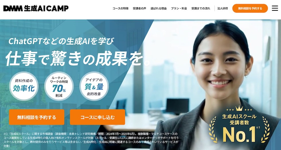 と思いの方はDMM 生成AI CAMPがおすすめ。
