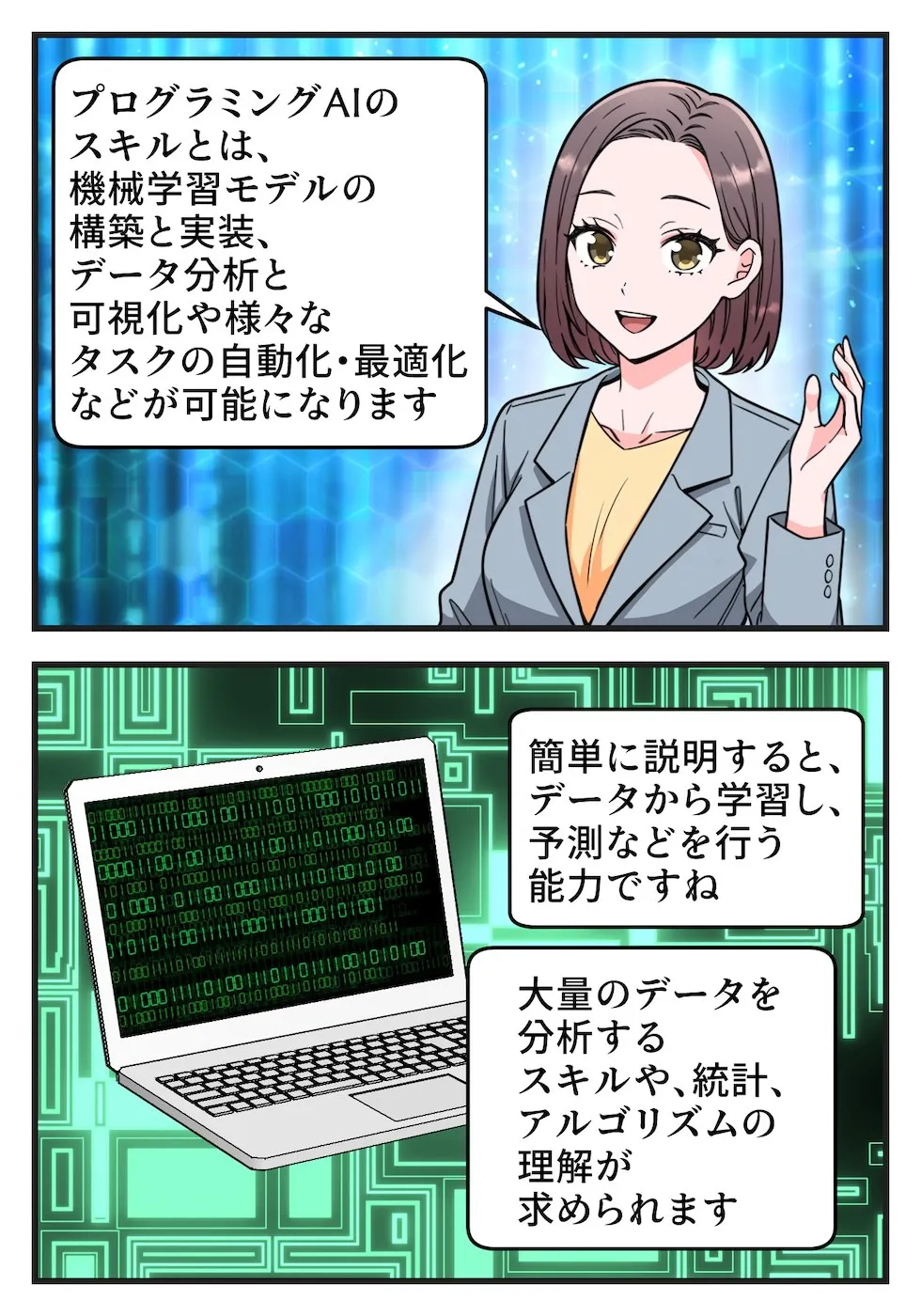 | プログラミングAI | ![]() 長い/ 高額 | ![]() 難しい | ![]() できる |