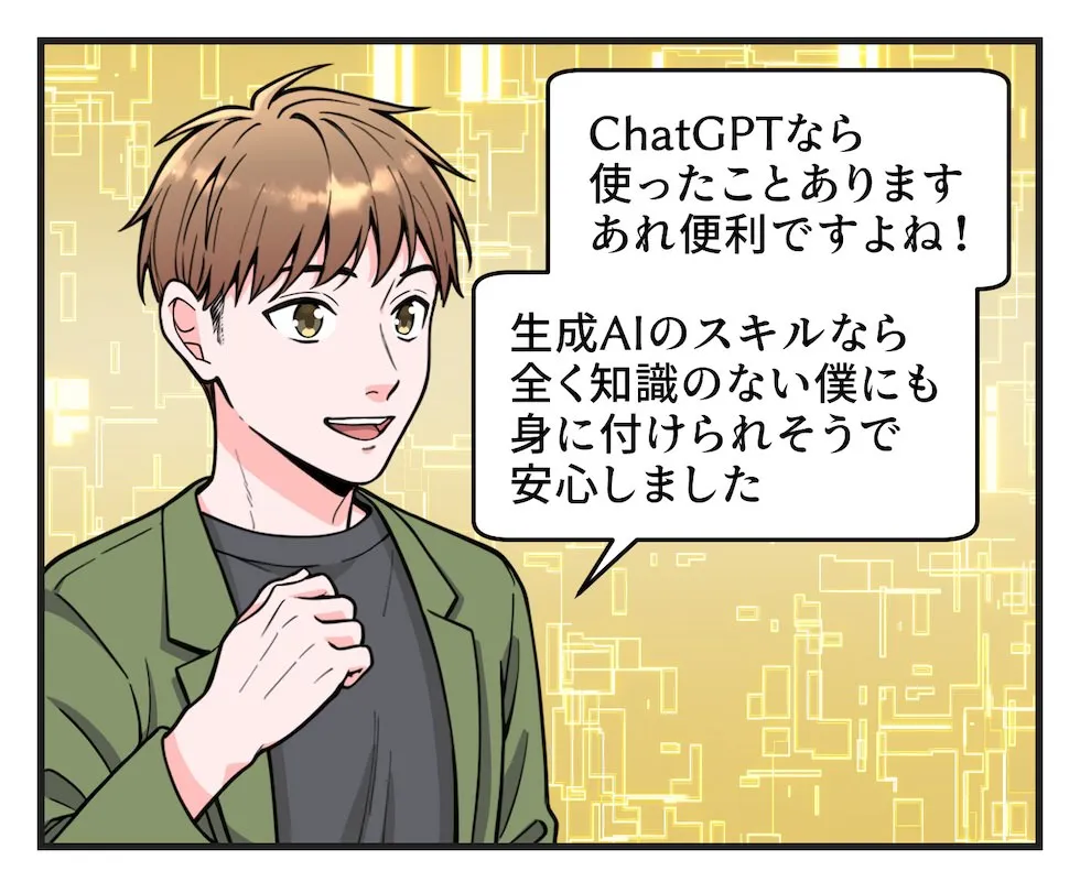 独学で学ぶよりも短時間で生成AIのスキルを身につけることができました。