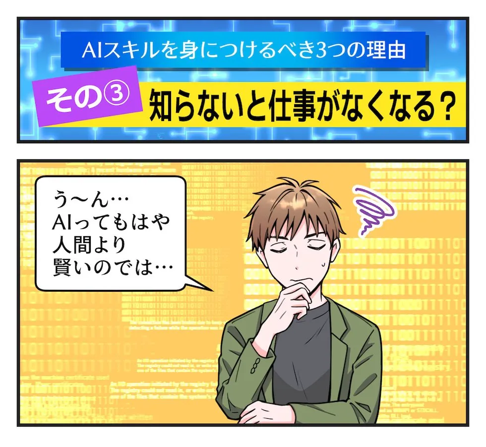 | ・リスキリング補助金適用で 最大70%還元 ・説明会参加で 生成AIプロンプト集プレゼント | ・リスキリング補助金適用で 最大70%還元 | ・受講料3万円OFF |